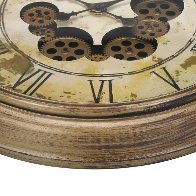 FURNIinspire Wall Clocks 24inch Timepiece Living Room Wall Clock Decorative Hanging Clock Vintage Wall Decor For Bedroom, Brown, 22.75″*22.75″*3″