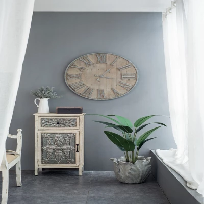 Bring farmhouse inspired character to your space with the GlasFlength Adelaide wall clock. This piece combines galvanized iron and natural wood for versatile style that complements any decor theme. Its rustic yet refined design creates an inviting focal point while offering functional timekeeping. Perfect for living rooms kitchens or entryways this clock transforms ordinary walls into stylish statements. Enjoy effortless integration with your existing furnishings and daily ambiance refresh.