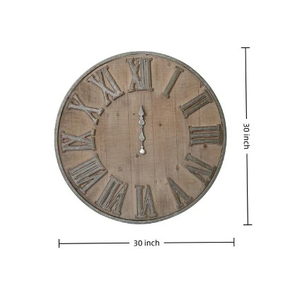 - Farmhouse Style Statement: This wall clock showcases rustic charm through its unique blend of galvanized iron and natural wood materials creating a distinctive focal point for living spaces.