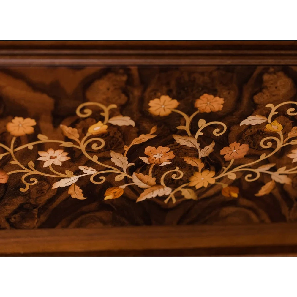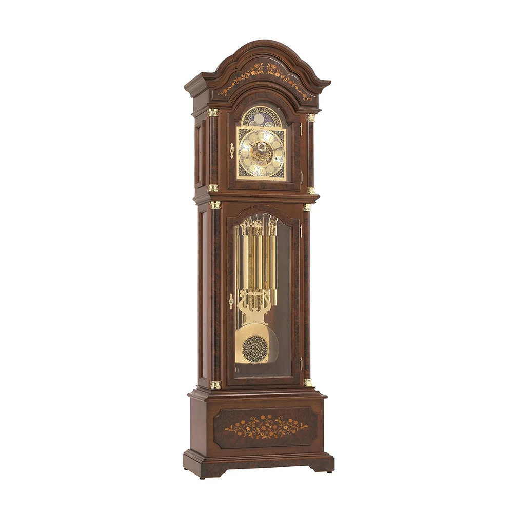 The Berlin Grandfather Clock stands out with its exquisite floral inlay on both the crown and base. Its intricately designed moon phase dial, pendulum, and weight shells enhance its refined appearance. At the heart of this timepiece is the precise Triple chime Tubular movement, offering Westminster, St. Michael, or Whittington melodies, complete with an automatic night silence feature for uninterrupted rest.
