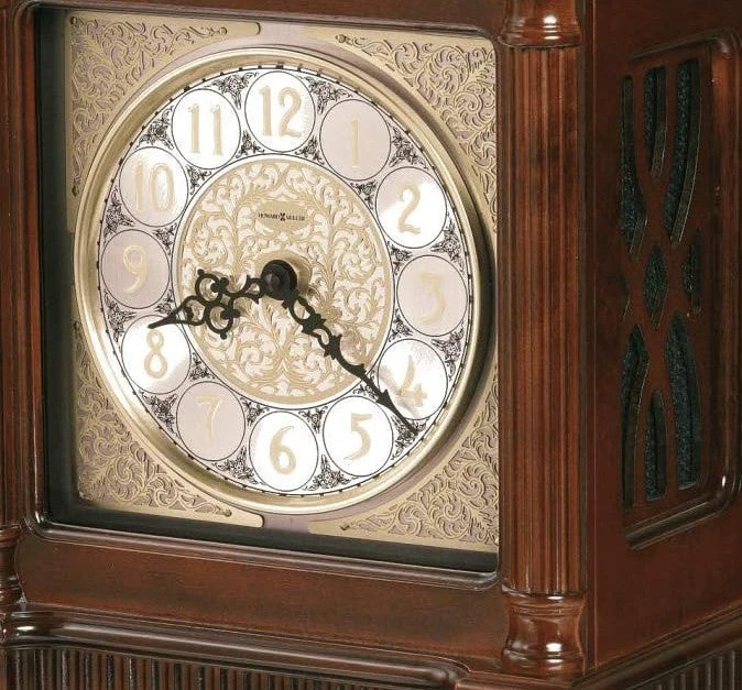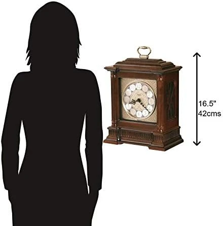- DIMENSIONS, This Howard Miller clock has a height of 16.5 inches (42 cm), a width of 12 inches (31 cm), and a depth of 7 inches (18 cm). Powered and operated by a quartz, dual-chime movement and require two C sized batteries (not included).