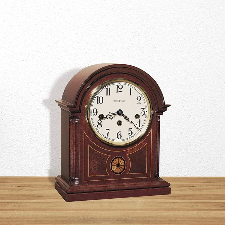 - MANTEL CLOCK: Crafted from select hardwoods and veneers in a Mahogany finish, this wooden mantel clock is designed with an intricate oval inlay of variegated maples and madrona burl for an eye-catching look.
