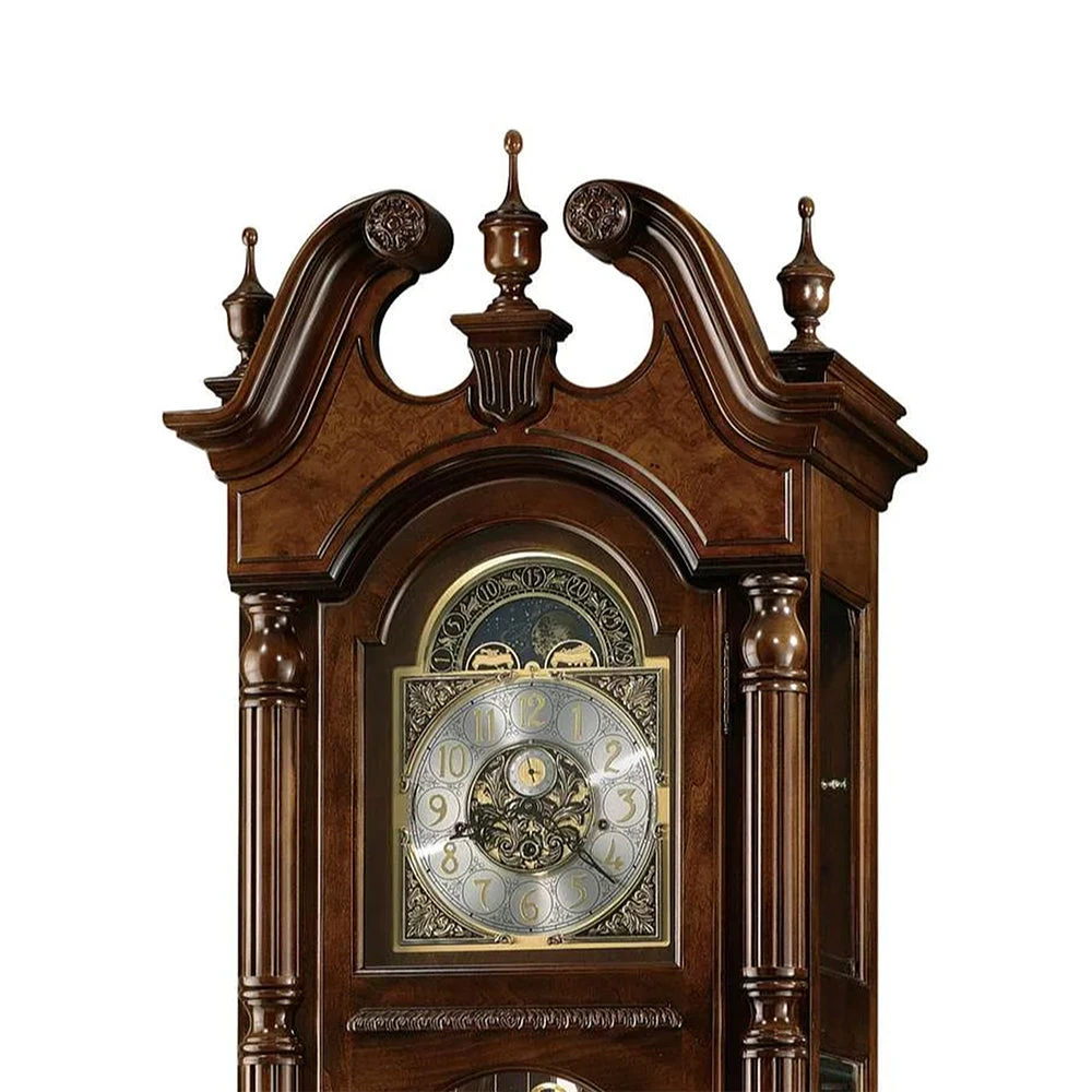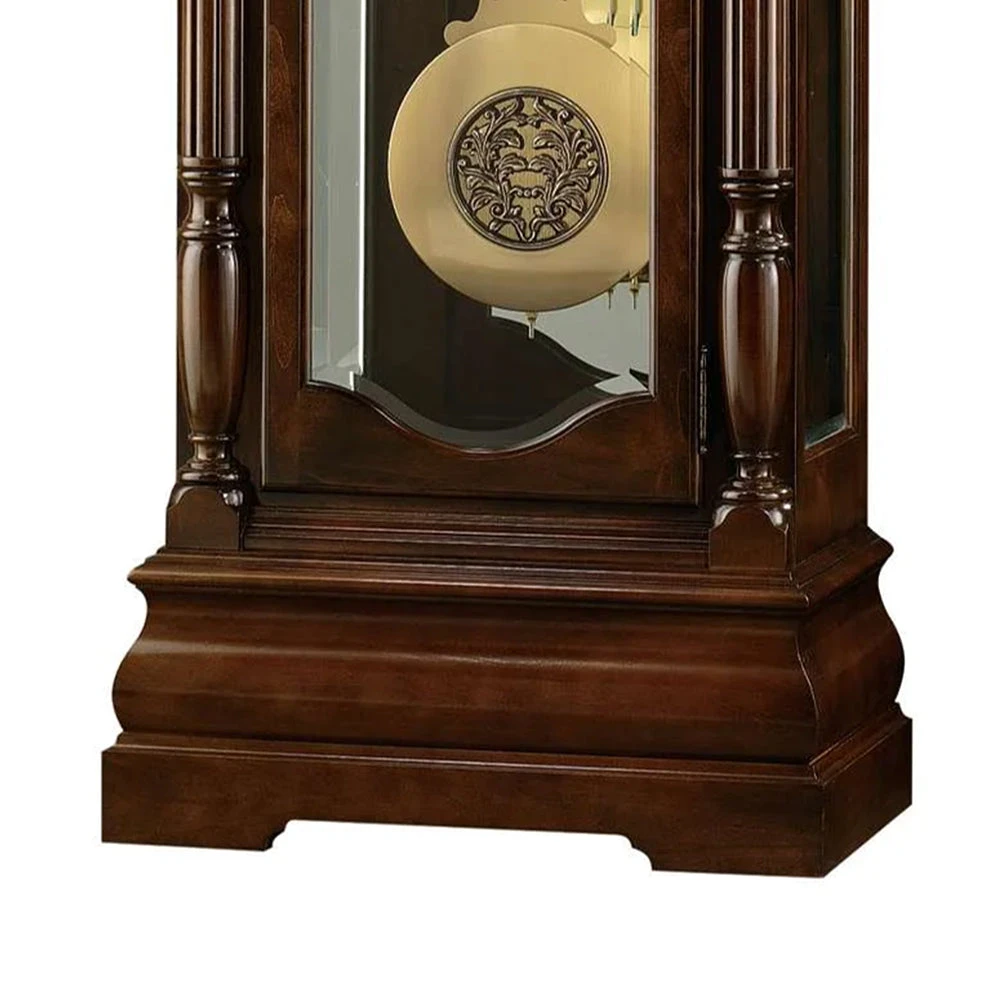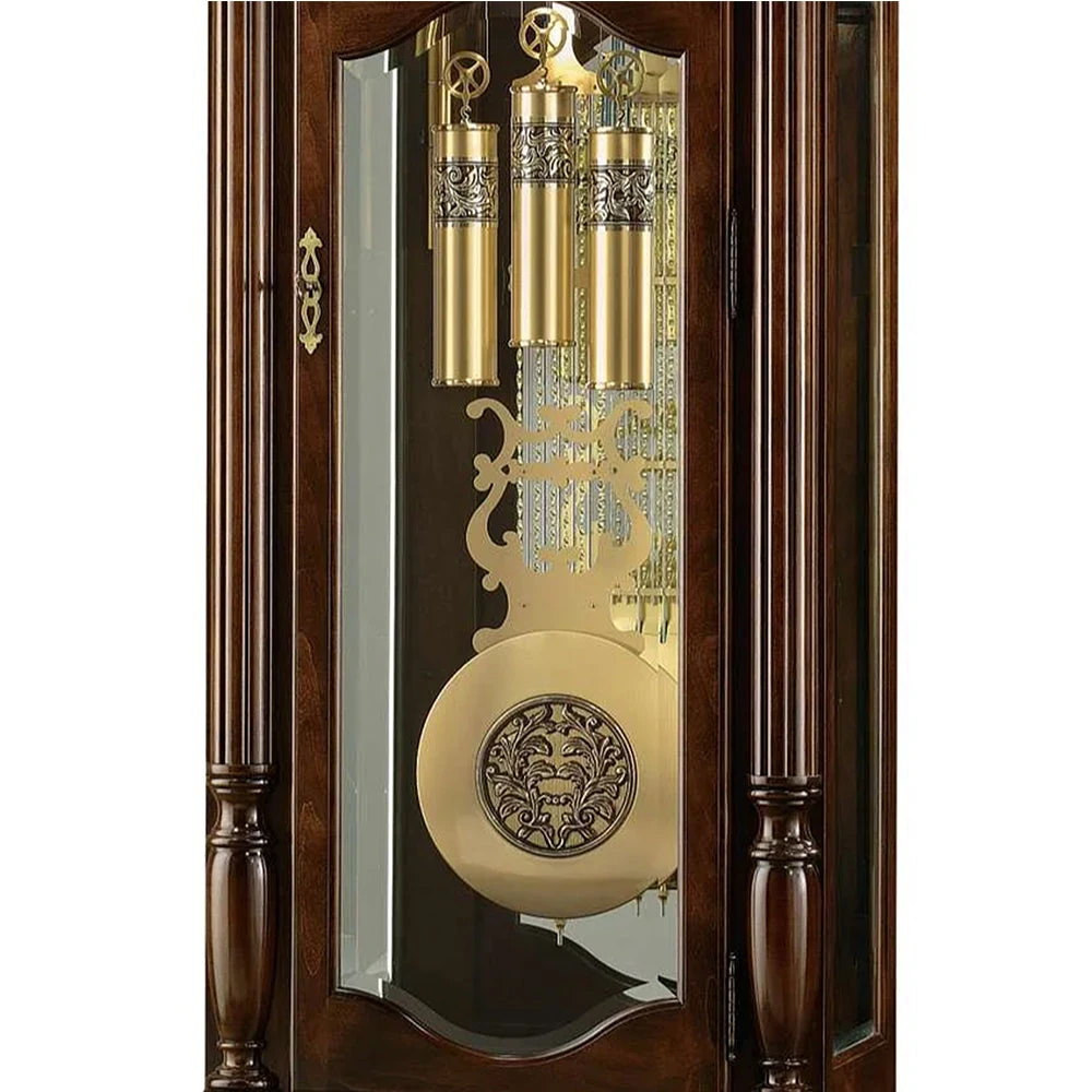 Door Décor: The lower décor is decorated with traditional Gadroon molding and beveled glass etched with a pattern. The top side panels with beveled glass are detachable, allowing for simple access to the clock.