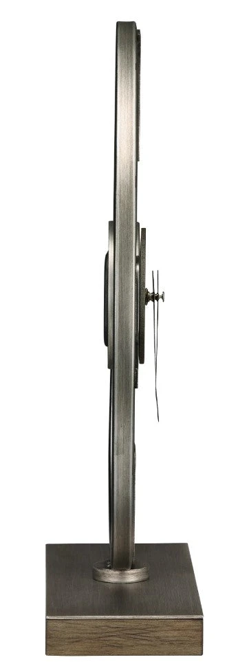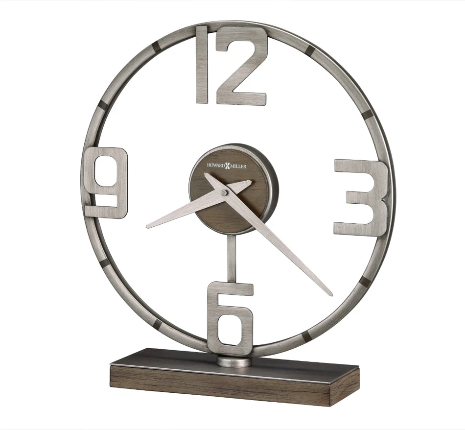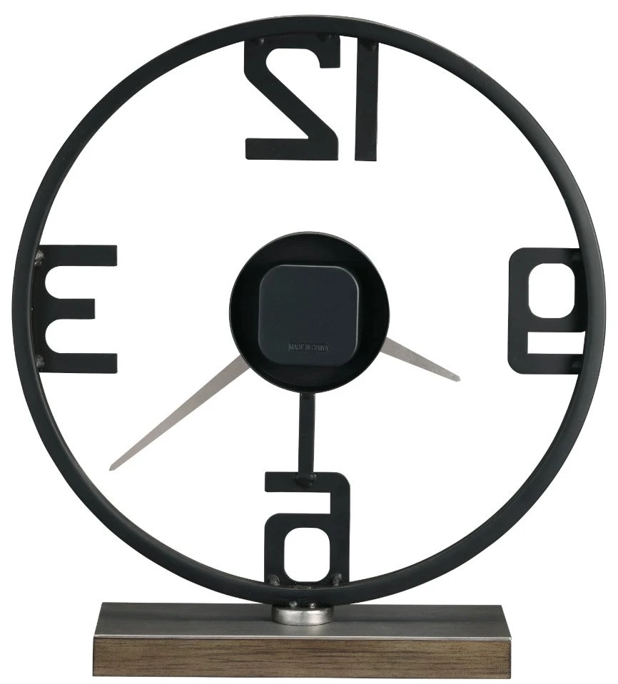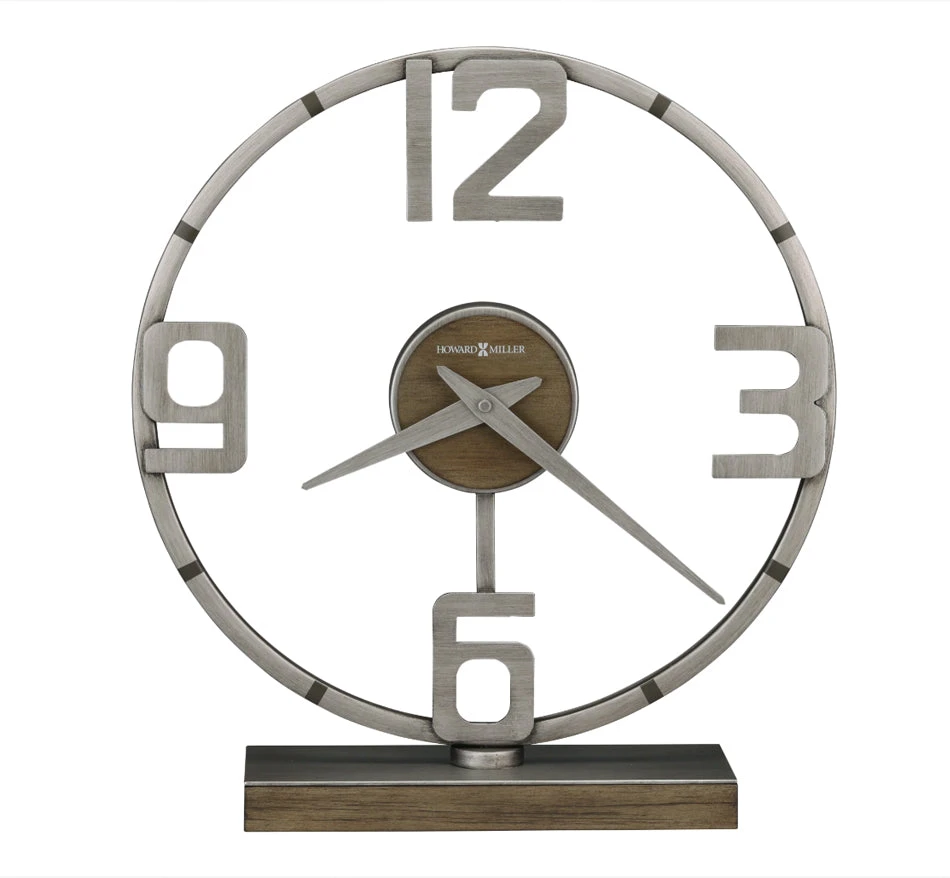 - Metal and wood mantel clock features a 15″ aged silver outer ring with large, applied Arabic numerals.