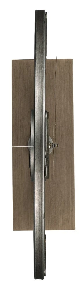 The Hollis Metal and Wood Accent Clock showcases an outer ring in aged silver, measuring 15 inches, and adorned with large applied Arabic numerals. Its center disk and base boast a taupe brown finish, while an aged silver top plate completes the design.