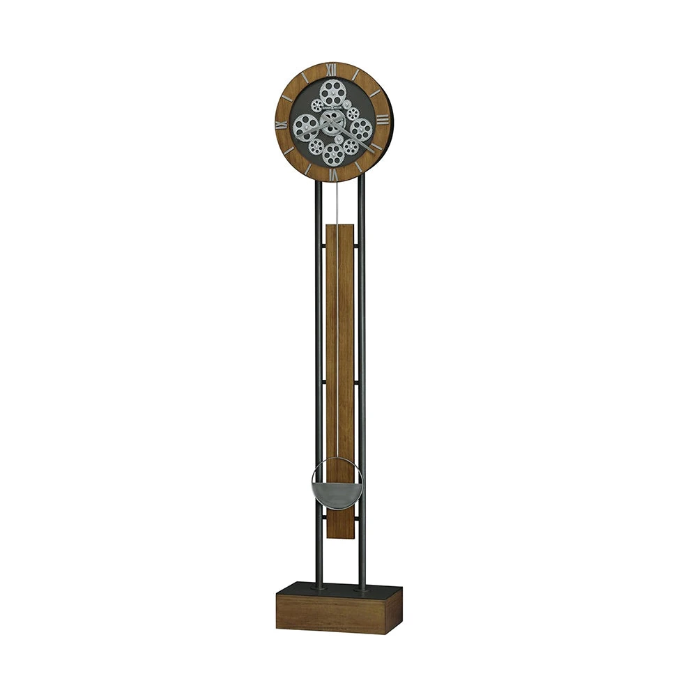 - This modern grandfather clock has a rustic, industrial style with moving gears on the dial.