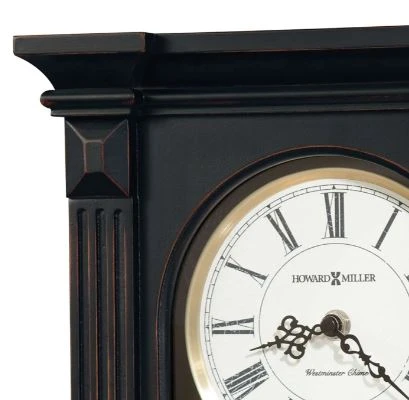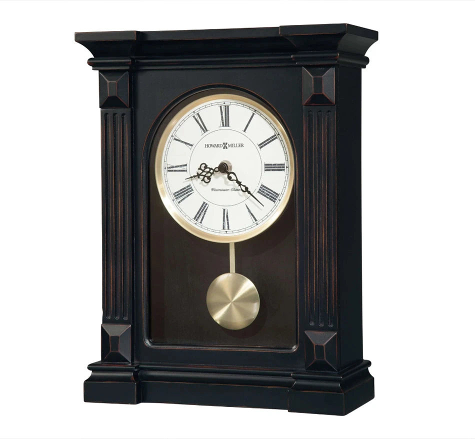The Mia Mantel Clock features a Worn Black finish with red and brown undertones on select hardwoods and veneers to complement your home decor. Place it above your fireplace in the living room for a classic decorative piece.