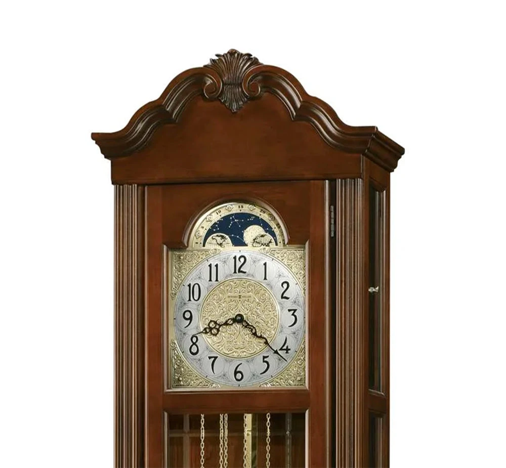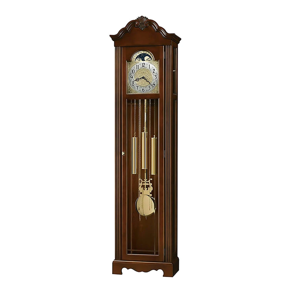 - EXQUISITE DESIGN: The Howard Miller Nicea Floor Clock features a rich Saratoga finish, expertly crafted from select hardwoods and veneers. Its lightly distressed surface adds vintage charm, making it an elegant and timeless focal point that complements both traditional and contemporary interiors, enhancing your living space with sophistication.