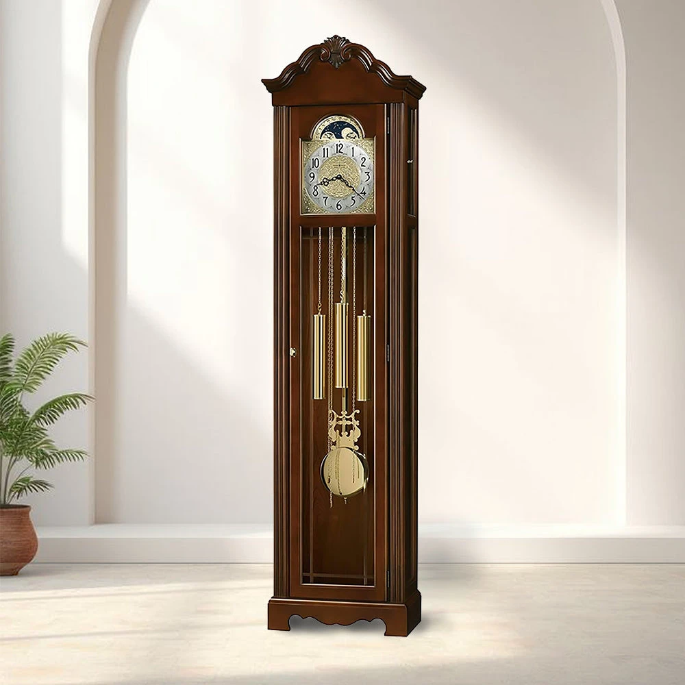 - SOOTHING CHIME: This clock features a German-made chain-driven movement that delivers the iconic Westminster chime on the hour. The full chime strikes with precision, while the illuminated blue moon phase adds a touch of serenity and charm, creating a harmonious ambiance in your home while marking the passage of time with elegance.