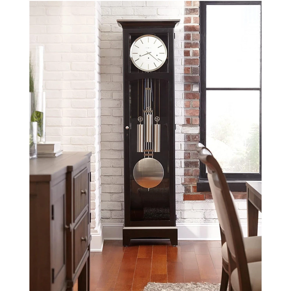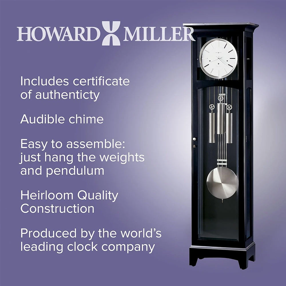Discover the Urban III Grandfather Clock by Howard Miller, featuring a sophisticated black satin finish and a precise quartz triple-chime movement. This clock offers a refined, modern aesthetic ideal for enhancing contemporary living spaces. Experience the quality and craftsmanship of Howard Miller’s premium grandfather clocks.