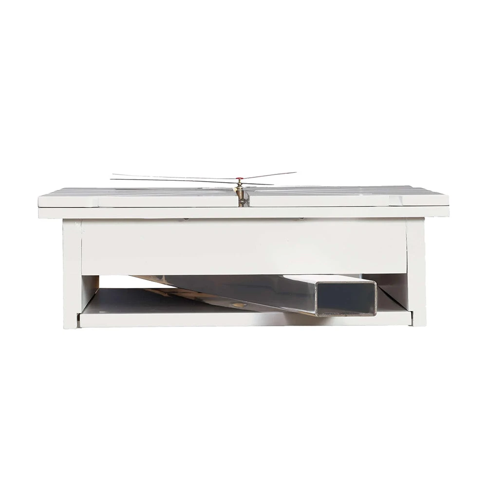 - The wooden base is finished in Gloss White and includes a polished stainless-steel metal top plate.