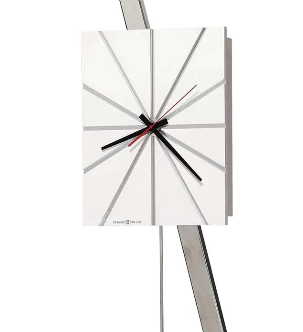 - The pendulum features a complementing rectangular-shaped bob finished in Gloss White with a polished stainless-steel rod.