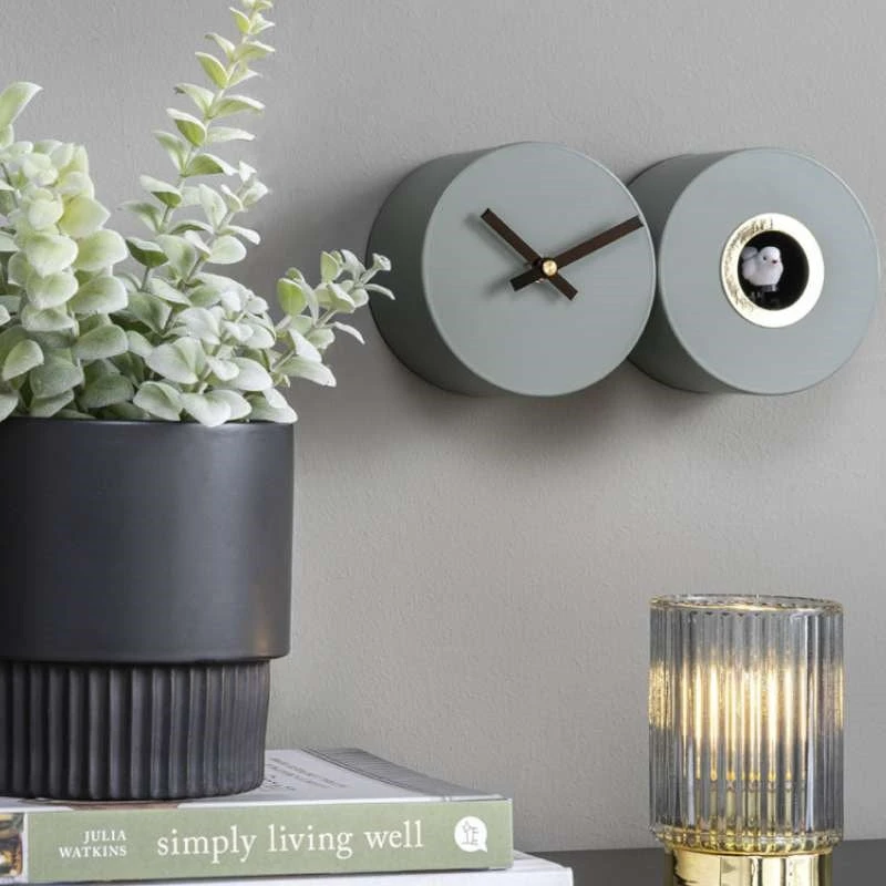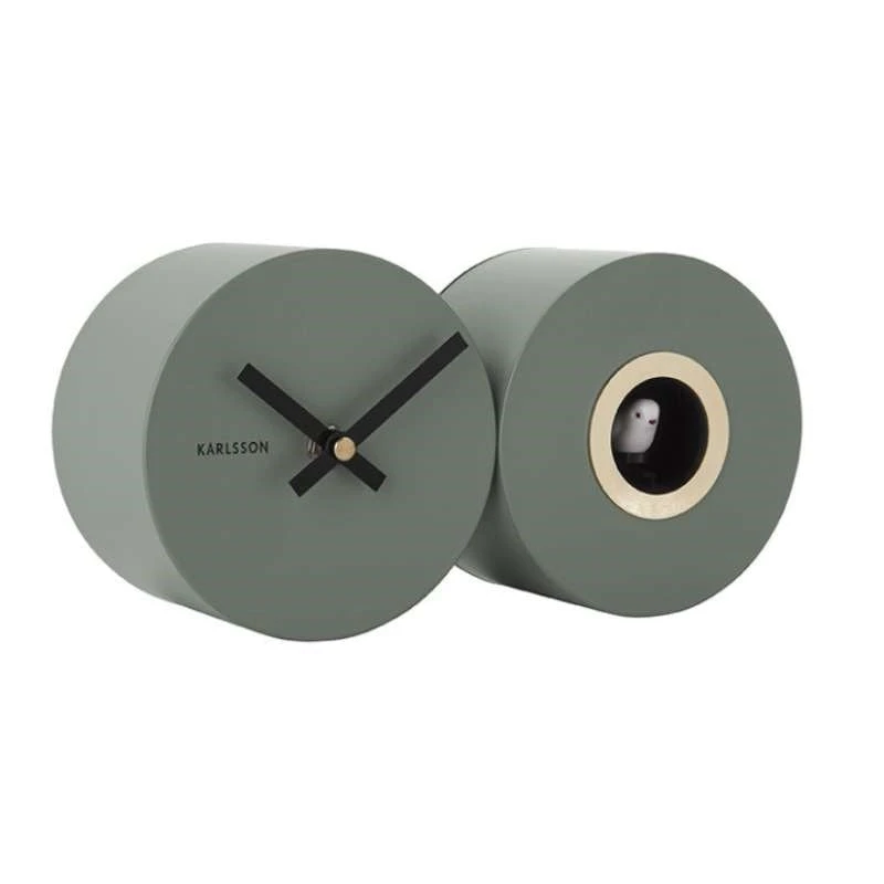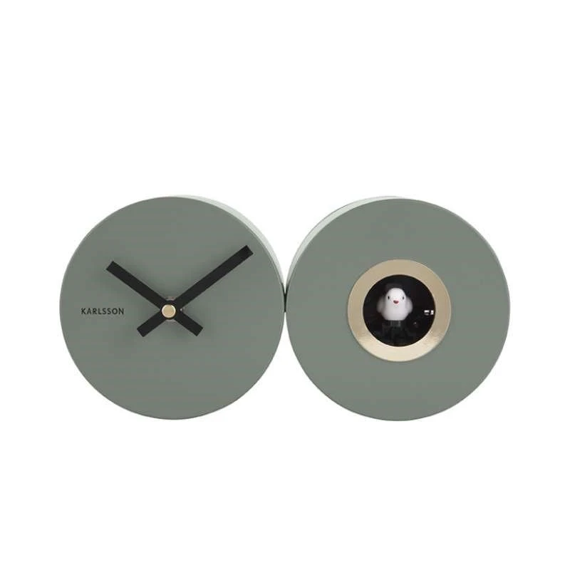 A fun modern take on a cuckoo clock, suitable for your wall or table. This sleek, open face steel clock features a cuckoo and optional bird sound. It has a sweep mechanism, which means no ticking noise.