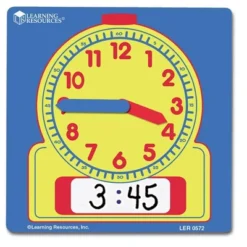 Teach both analog and digital time, plus elapsed time, with this large, geared interactive clock. Invite students to move the minute hand and see the change in the digital display window. Keep the window closed to assess clock-reading skills. Clock is accurate to the minute.We’re Learning Resources®, and we’ve been helping parents and teachers build generations of amazing kids since 1984. From ABCs and 123s to fine motor and STEM skills, our educational toys offer kids the building blocks they need to succeed in school and develop a lifelong love of learning. Discover countless ways to learn through play with our award-winning products, including Toy of the Year winners Tumble Trax®, Botley® the Coding Robot, and Coding Critters™.
