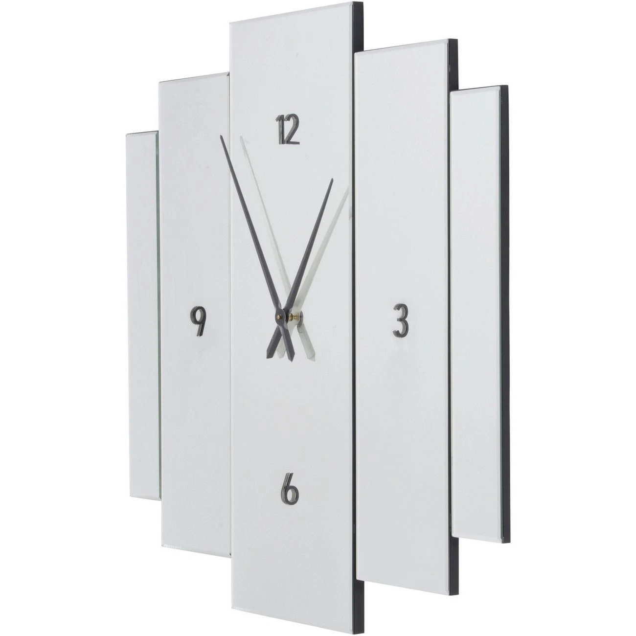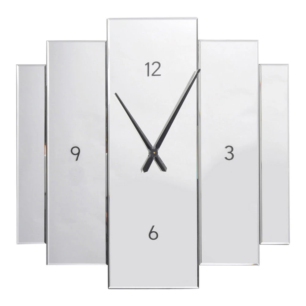 Crafted from rectangular panels of mirror glass arranged in a staggered, layered design, it boasts a stylish symmetrical look. The pared-down clock face features bold black numerals and elegant hour and minute hands, creating a lovely minimalist aesthetic. As an added bonus, this clock operates silently, so you can focus on even the most intensive of tasks.