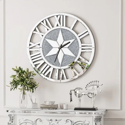 - 【Silent Mirrored Wall Clock】Featuring crushed diamonds and exquisite bevel mirror that looks glamorous and sparkle, will naturally attract the eye, the mirrored clock is equipped with silent quartz movement to keep the time accurate, there is no ticking sound to keep you awake at night