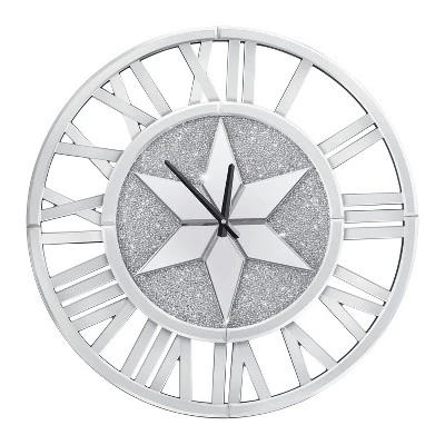 This is not just a normal clock, it is a beautiful art decor. Looks gorgeous and stunning as the clock adorned with sparkle crushed crystal diamond and silver glasses, matches every home decorating styles. Silent enough and you can’t hear clock’s mechanisms working.The clock is a time-measuring device, it shows what hour and minute of the day we are in. It also can be a decorative element as our clock is decorated with silver glass and crushed diamond, bringing class to the room, never goes out of style. Why not try a decorative wall clock in the home? Our clock features a beautiful look with bling crystals and silver mirrors. Built in roman numerals, which are often used on clock as a way to indicate time in a traditional and classic way. Very functional, also used a fabulous decoration.
