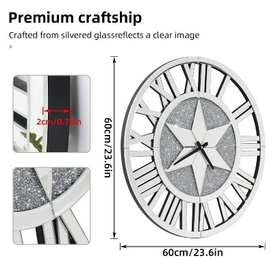 - 【Silver Crystal Clock】Wanna get a unique wall clock design for any occasion? Get this item that won’t be disappointed, the clock crafted from beveled silver glass mirrors with little bling crush diamond, looks beautiful while reflecting natural lights and clear images well, hand-polished edge won’t hurt your hands, with a durable MDF board supports the frame, remains sturdy for use