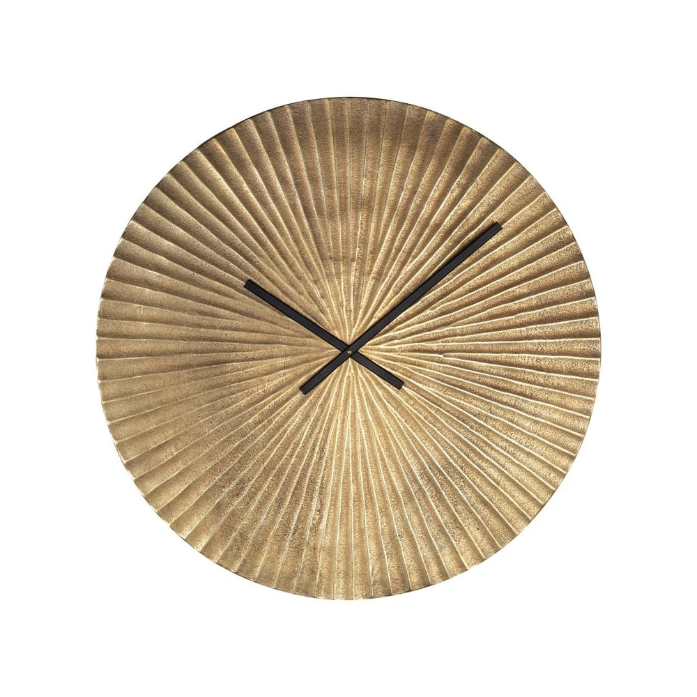 Crafted from golden aluminium, this round clock exudes elegance and sophistication with a design that deliberately omits numbers to embrace a clean aesthetic that emphasises simplicity. This minimalist approach allows the true star of the piece – its textured design – to take centre stage, captivating the eye with its intricate patterns.