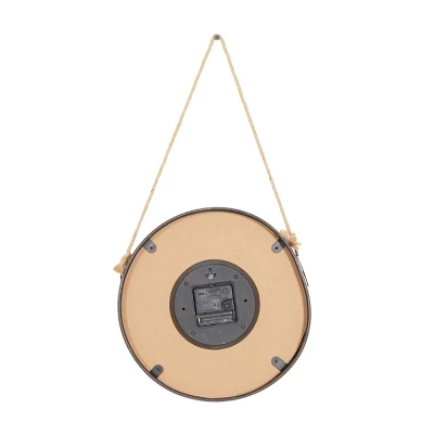 - This clock features round shaped with solid pattern with attached rope for easy hang